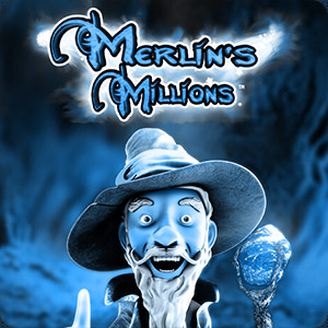 Игровые автоматы Миллионы Мерлина имеют тематические волшебные символы — книга заклинаний, посох с красным камнем, флакон с фиолетовым снадобьем, стилизованные карточные знаки A, K, Q, J, 10 и 9.